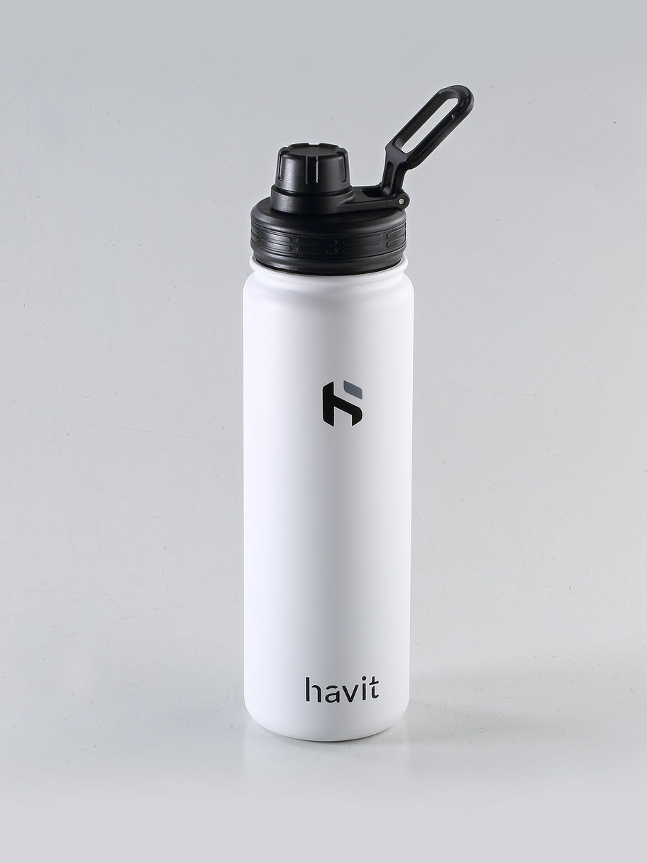 Havit Premium Stainless Steel Insulated Water Bottle White 800ml, USFDA Certified, Keeps Hot For 12 Hours, Cold For 24 Hours.